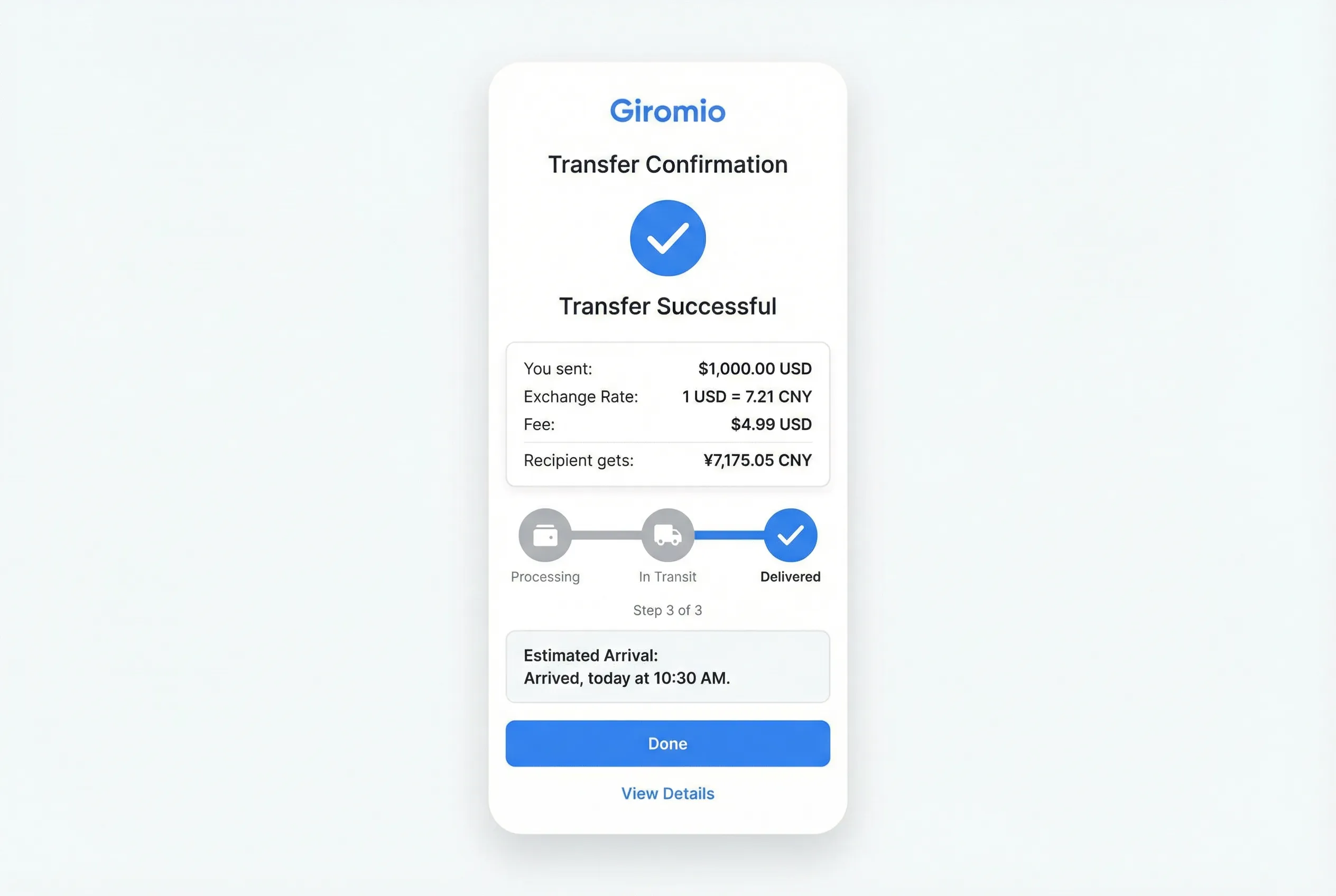 智能路由系统自动选择最优通道,大幅缩短到账时间。汇款进度实时更新,随时随地掌握资金动态。